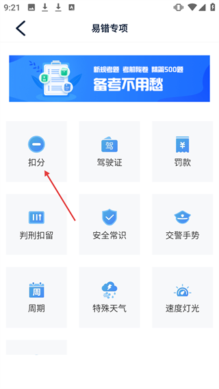 2、在易错专项分类页面,点击【扣分】进入扣分考点页面。
