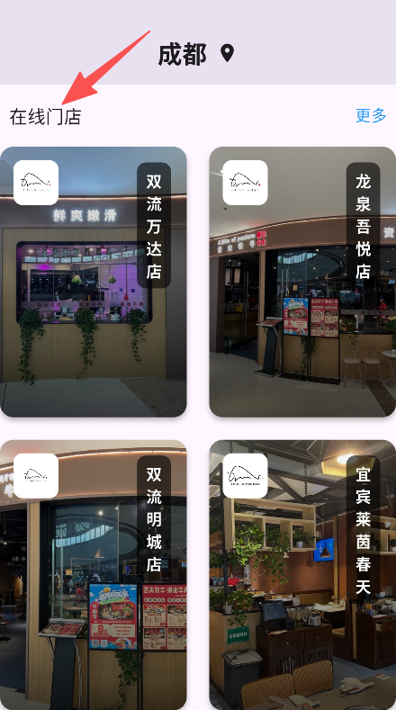 1、在线门店信息直观,各门店图片与名称清晰展示,食客可快速识别目标门店。