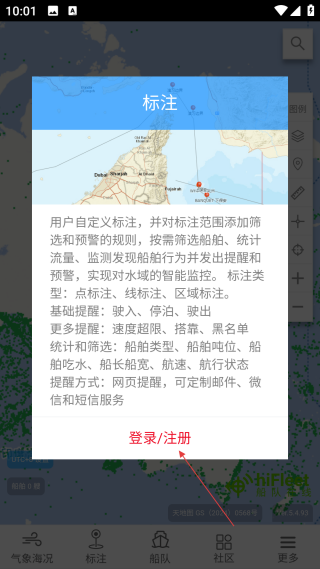2、在标注功能界面,点击【登录/注册】,进入登录界面。