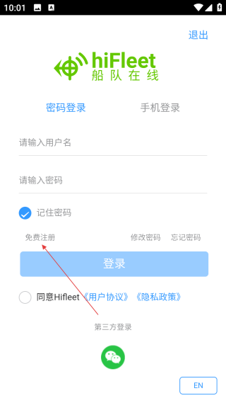3、在登录界面,点击【免费注册】,进入注册界面。
