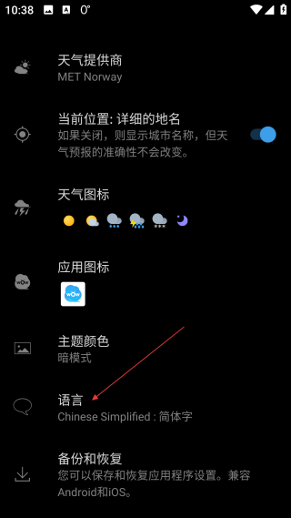 3、在设置界面,点击【语言】,进入语言选择界面。