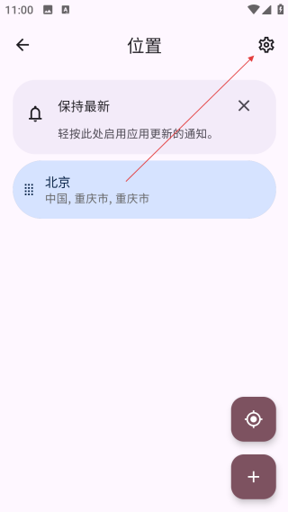 2、在位置界面,点击【右上角设置图标】,进入设置界面。