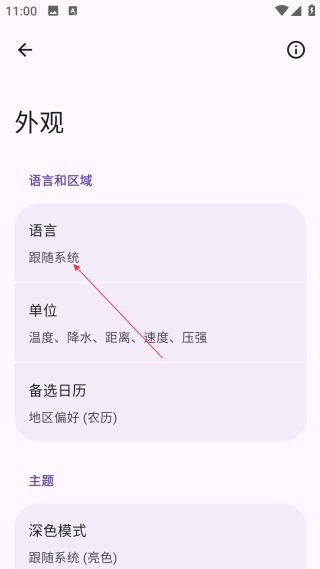 4、在外观设置界面,点击【语言】,即可进行语言相关设置操作。