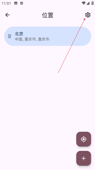 2、在位置界面,点击【右上角设置图标】,进入设置界面。