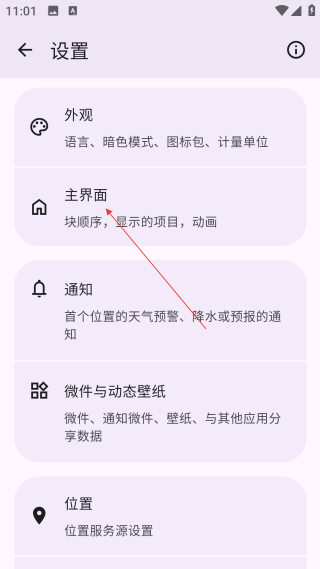 3、在设置界面,点击【主界面】,进入主界面设置界面。