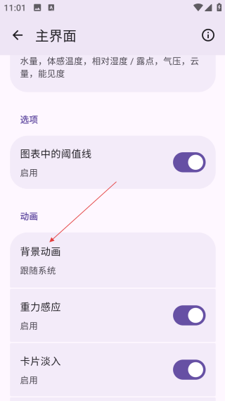 4、在主界面设置界面,点击【背景动画】,即可进行背景动画相关设置。