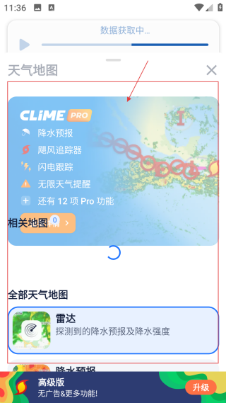 2、进入天气地图界面,可【查看降水预报、飓风追踪器等天气地图】,掌握天气状况。