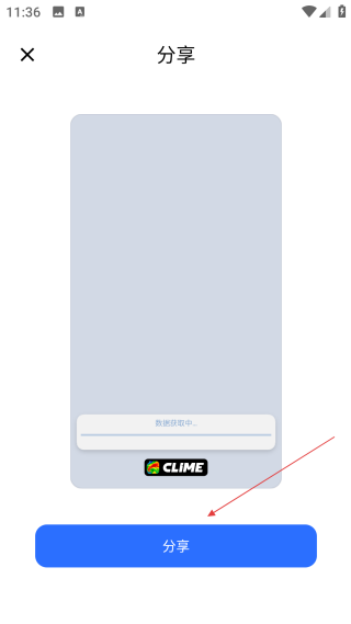 3、进入分享界面,可点击【分享按钮】,将天气信息分享给他人,享受天气信息分享服务。