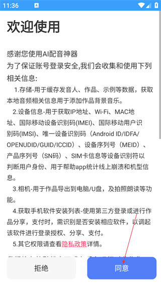 1、在欢迎使用页面,点击【同意】,即可开始使用软件。