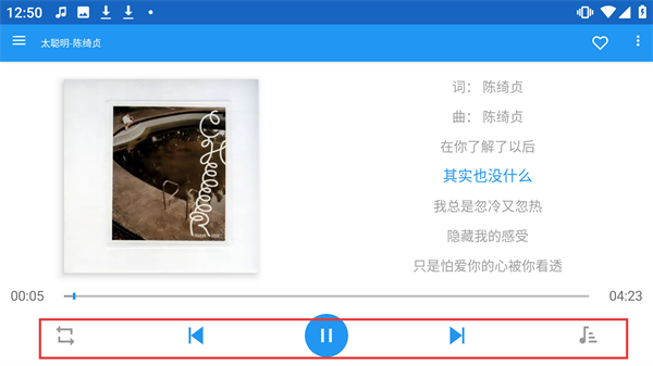 4、在该音乐播放界面中,可进行播放控制、模式切换等模式。