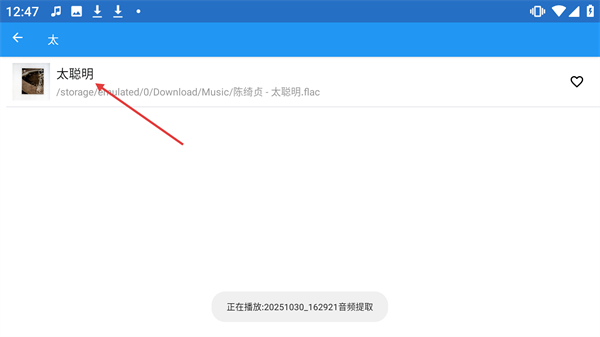 3、在搜索结果中,点击目标歌曲(如“太聪明”),进入播放页面开始播放。