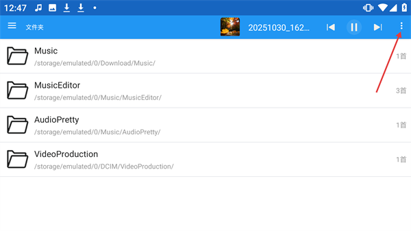 1、在文件夹页面,点击右上角的三个点图标,进入搜索界面。