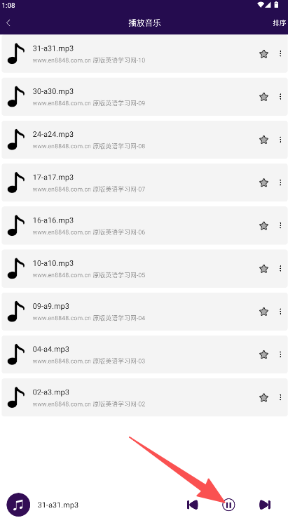 3、在播放界面点击暂停键控制当前选中音频的播放状态。