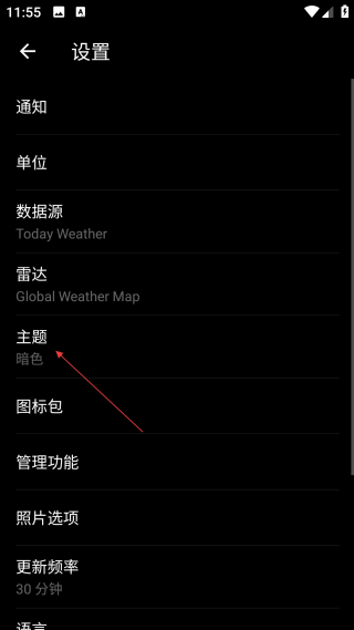 3、在设置界面,点击【主题】,进入主题选择界面。