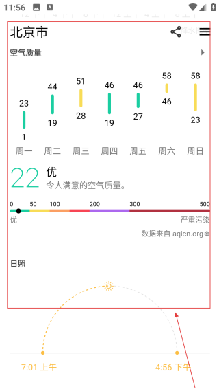 4、进入空气质量界面,可【查看北京市空气质量变化】享受环境查询服务。