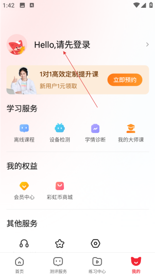 2、在个人界面,点击【Hello,请先登录】,进入登录界面。