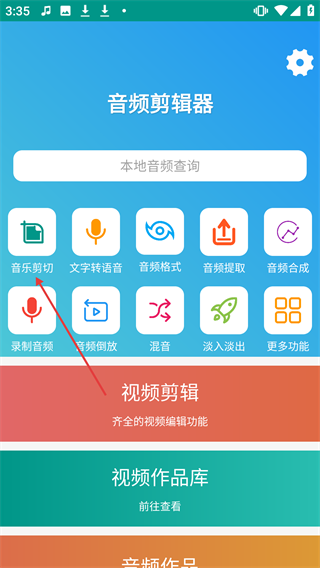 1、进入软件,在音频剪辑器首页点击【音乐剪切】。