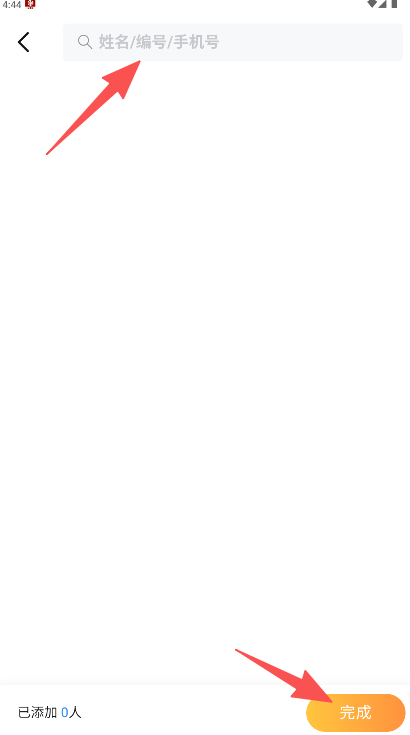 3、在选择页面完成人员添加后点击右下角橙色“完成”确认。