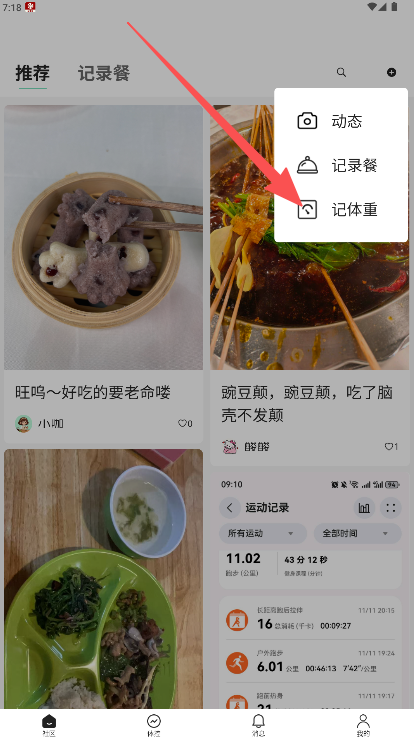 3、选择记体重功能录入当前体重数据完成健康追踪。