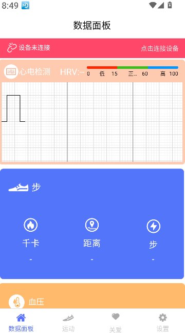 1、进入首页后可查看数据面板,浏览心率、睡眠等核心健康信息。