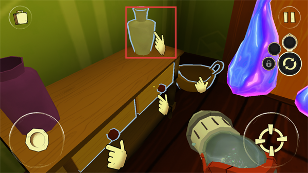 2、根据提示互动【柜子】与【花瓶】,按指引操作开启抽屉,获取其中物品,推进新手流程。
