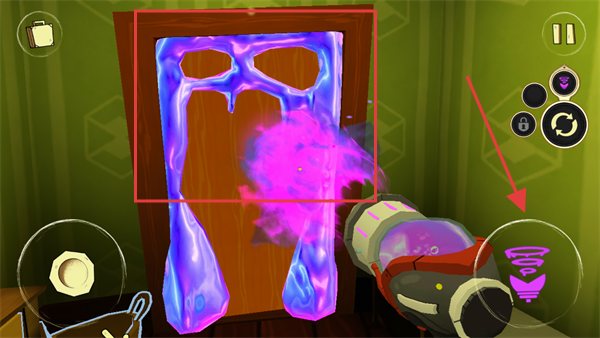 4、使用【粘液道具】对准目标区域释放,触发场景变化,随后即可成功打开大门。