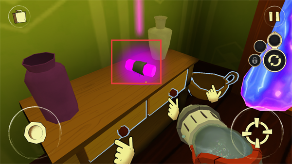 3、互动后出现【粉色粘液道具】,拾取该道具,它将用于后续与场景元素的交互操作。