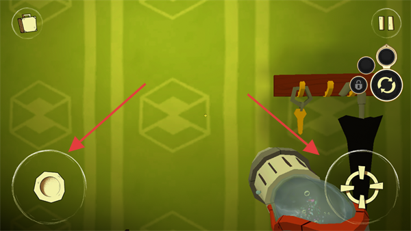1、进入场景后,先操作拾取【螺母】类道具,同时留意右侧悬挂的【钥匙】,后续可用于解锁相关机关。