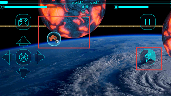 3、接近【红色星球】时,留意角色状态,同时可借助右侧功能按钮辅助规避障碍,推进关卡进程。