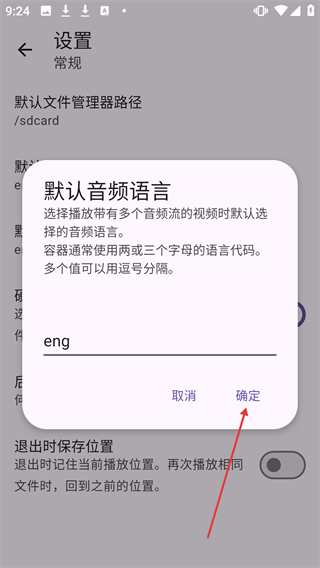 4、在mpv默认音频语言设置弹窗中,设置完成后点击【确定】按钮即可保存设置。