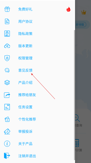 2、在功能菜单界面,点击【意见反馈】,进入意见反馈界面。