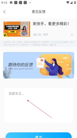 4、在意见反馈界面填好内容后,点击【提交】,即可完成反馈操作。