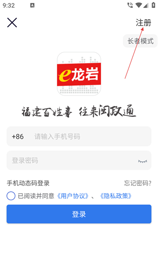 3、在登录界面,点击右上角【注册】,进入用户注册页面。