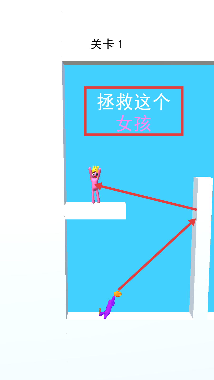 1、关卡1中,明确任务【拯救这个女孩】,操控紫色角色开始行动,准备营救粉色女孩。