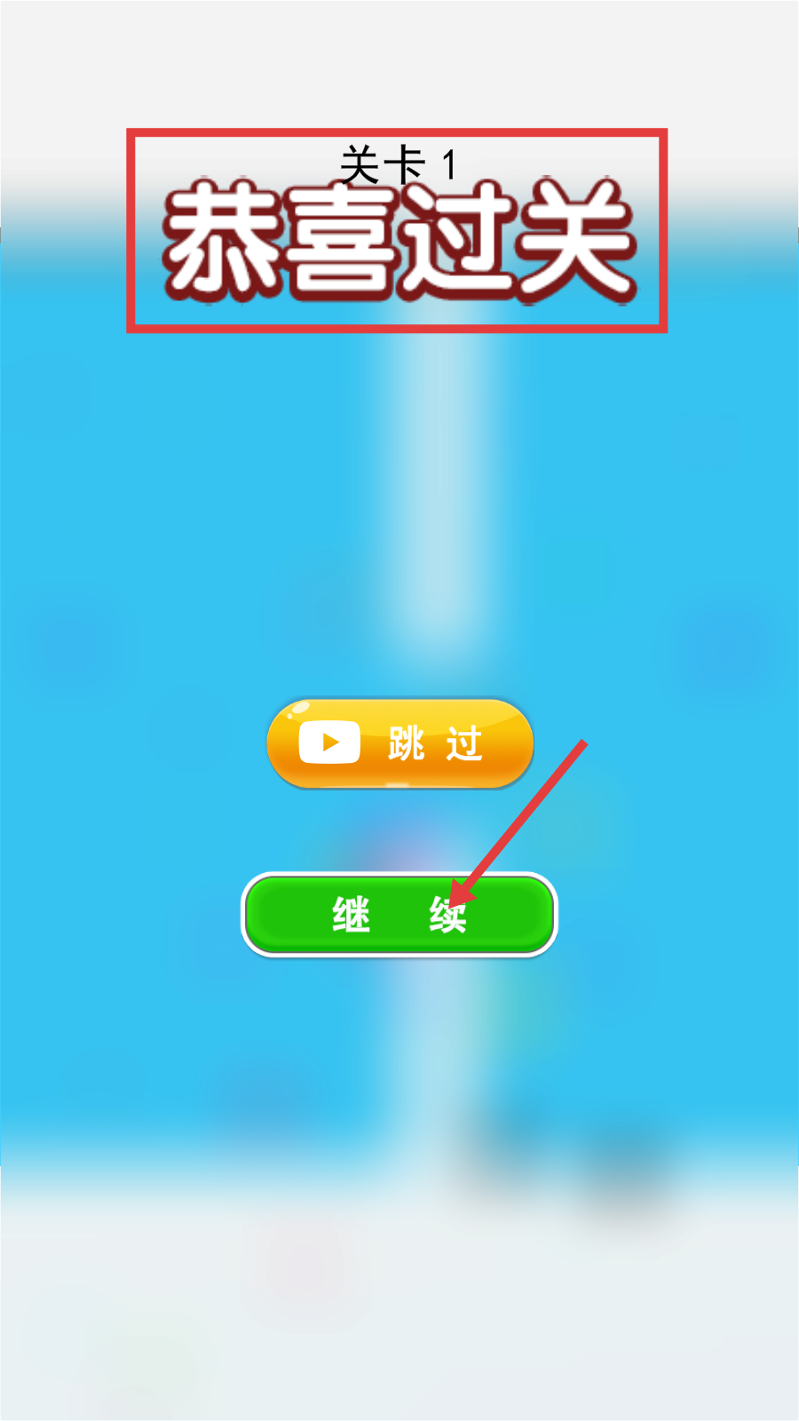 4、成功过关后,出现【恭喜过关】提示,点击【继续】按钮,进入下一关挑战。
