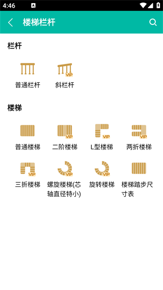 2、在首页的工程计算分类下,选择【楼梯栏杆】功能,进入对应分类页面。