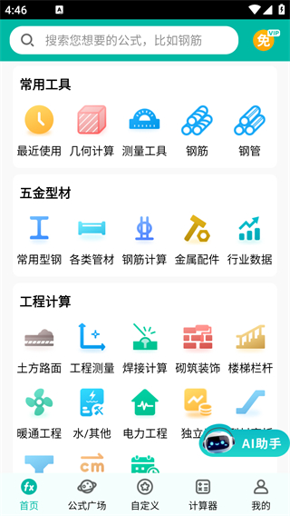 1、内置涵盖建筑工程常用计算类型的完整公式库,包括几何测算、材料用量及结构计算等专业公式,满足现场多样化计算需求。