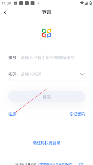 3、在登录界面,点击【注册】,切换到账号注册的操作界面。