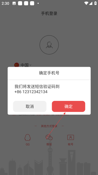 4、在确定手机号弹窗中,点击【确定】,即可发送验证码到对应手机,继续注册操作。