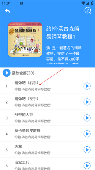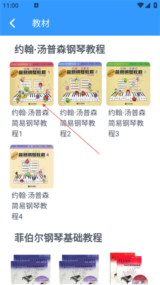 2、在教材列表中,选择目标教材,进入该教材的曲目列表页面。