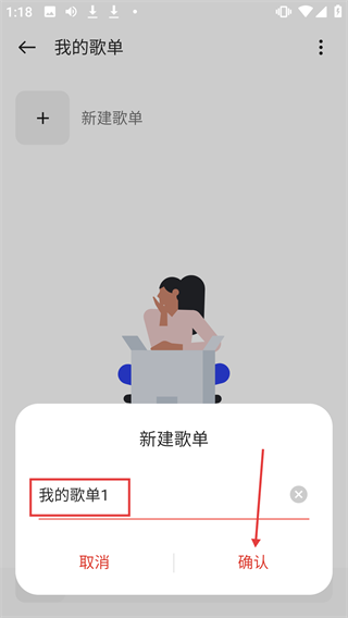 3、在新建歌单弹窗中,输入歌单名称(如“我的歌单1”)后点击【确认】。