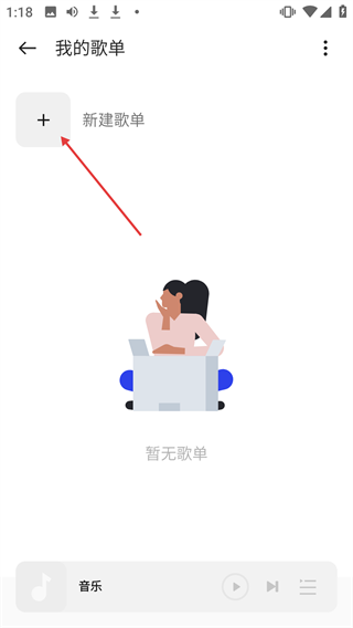 2、在我的歌单页面,点击【新建歌单】的【+】按钮,触发新建歌单操作。