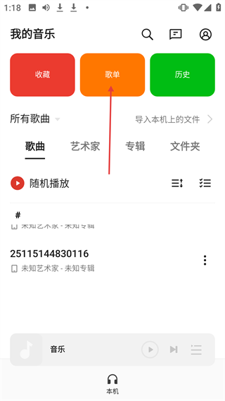 1、在【我的音乐】界面,点击【歌单】按钮,进入我的歌单页面。