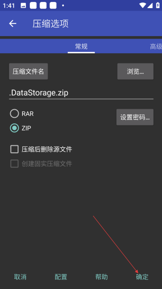 3、确认压缩格式与文件名后,点击底部【确定】执行压缩操作。