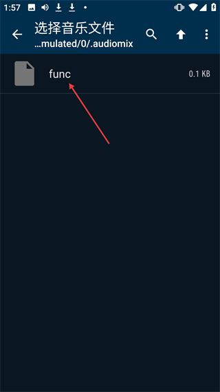 4、在【.audiomix】文件夹中,点击【func】文件,完成选择。