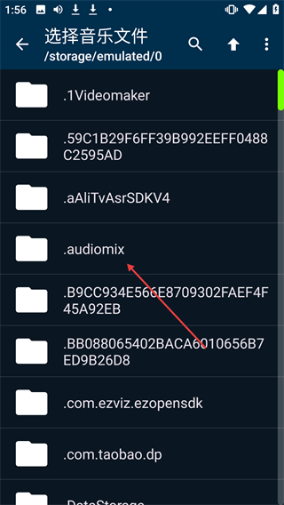 3、在选择音乐文件界面,点击【.audiomix】文件夹,进入该文件夹。