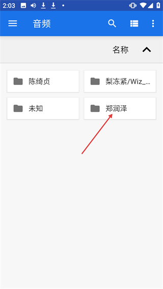 3、在音频页面,点击【郑润泽】文件夹,进入该文件夹。