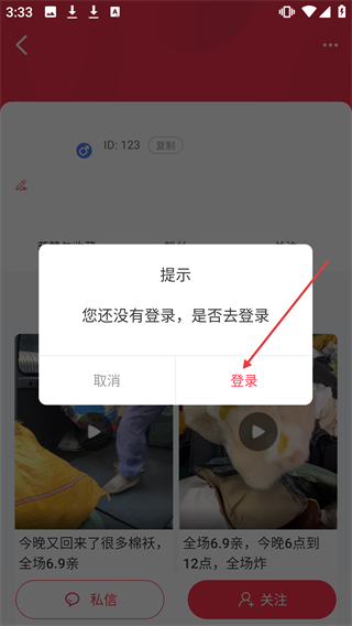 4、在弹出的“您还没有登录,是否去登录”提示框中,点击【登录】按钮,进行登录操作。