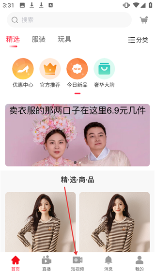 2、短视频中心兼具娱乐与种草功能,刷视频即可发现潜力好物,边看边买提升购物趣味性与直观性。