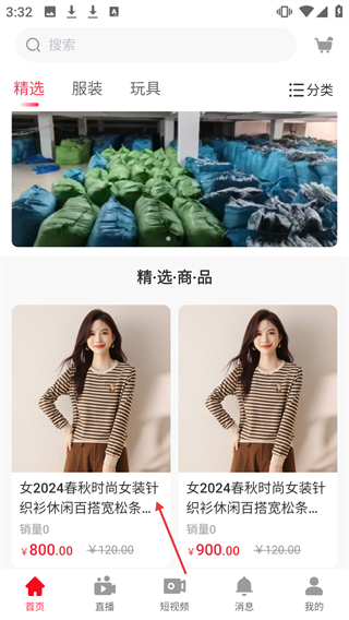 1、在进入软件,点击“女2024春秋时尚女装针织衫”商品,进入详情页。